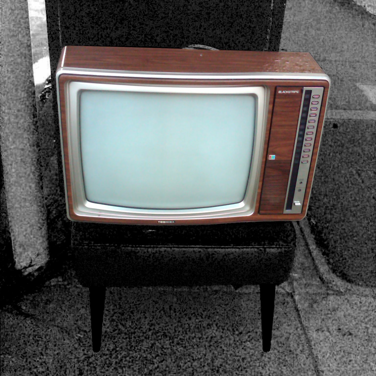 I found this TV at our local 'trash corner' ... you know the one. It is that corner in your neighborhood where everyone seems to dump their unwanted goods. I thought it would be fun to make the background of this image look like fuzzy black and white television and leave the television in color ... get the joke?