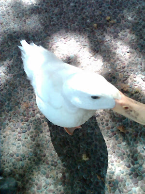 Evidently this is a baby swan ... or so the waiter told us. It looks like a duck to me but I am no expert. The swan/duck was like a dog and kept begging (patiently) for food off of the table.